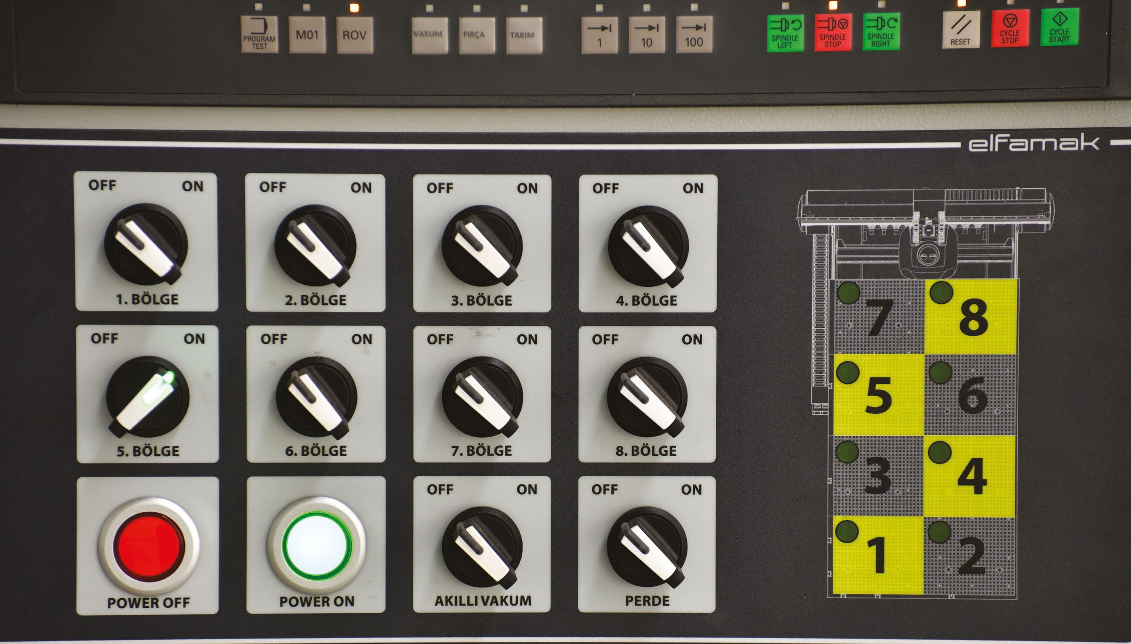 In the Venom series, the vacuum working table is made of aluminum material. In the standard Venom series, the table consists of 8 vacuum zones, and the second vacuum pump automatically opens the zone where the spindle motor is located, increasing the additional vacuum power and providing high grip capability for small parts.